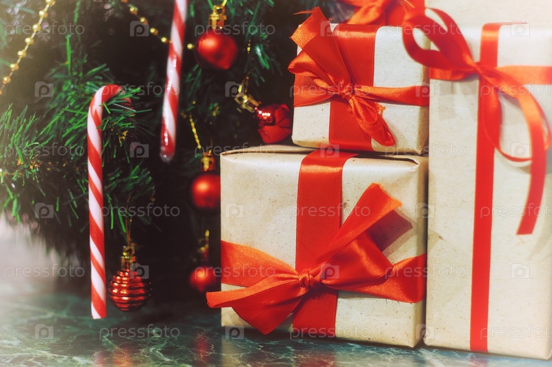 Стопка подарков под елкой