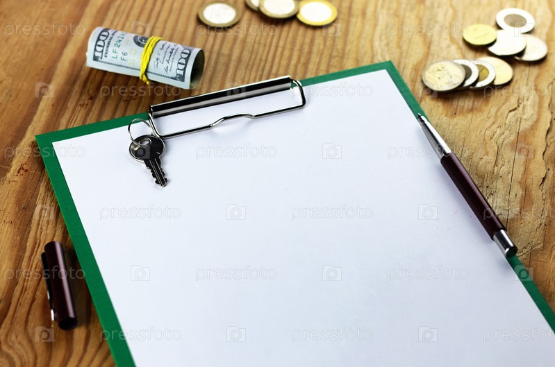 Деньги, чистый лист и ключи