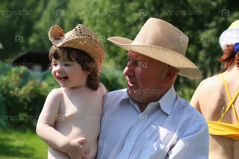 Ребенок и дедушка в ковбойских шляпах
