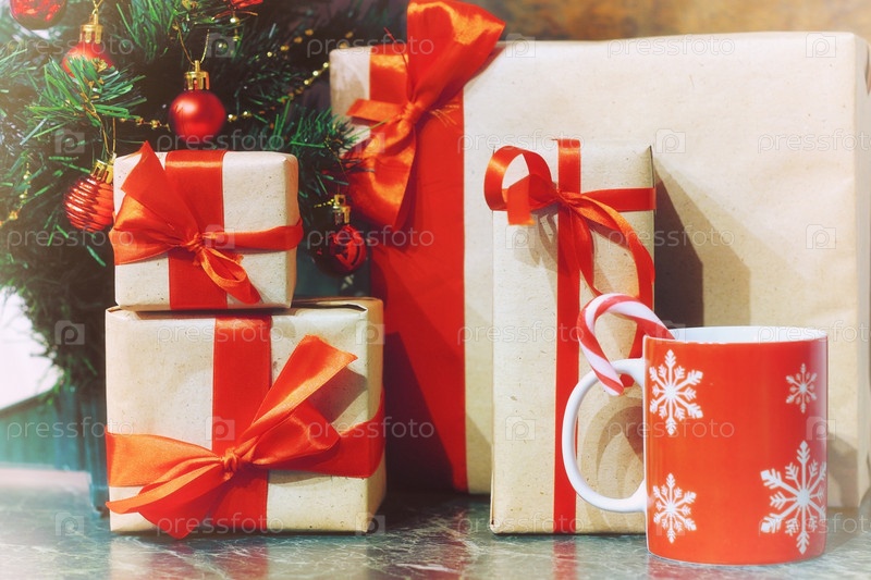 Стопка подарков под елкой