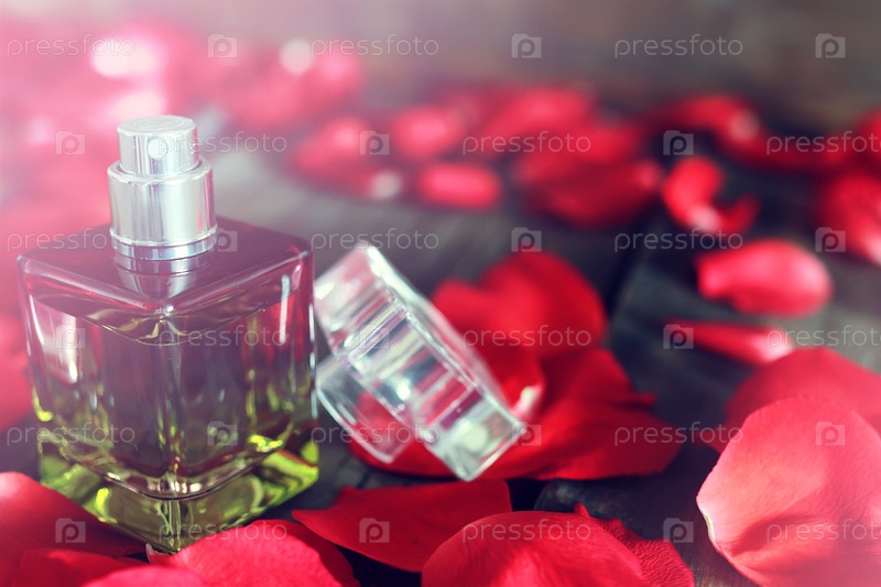 Духи с ароматом роз и лепестки
