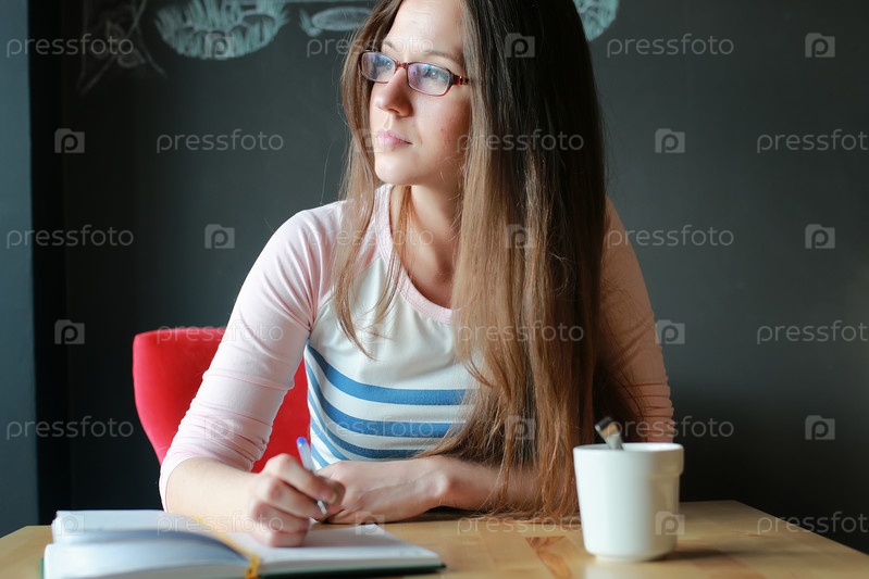 Мечтательная девушка в кафе
