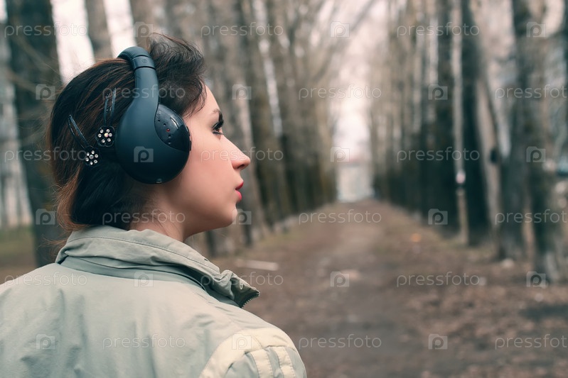 Девушка в парке с наушниками