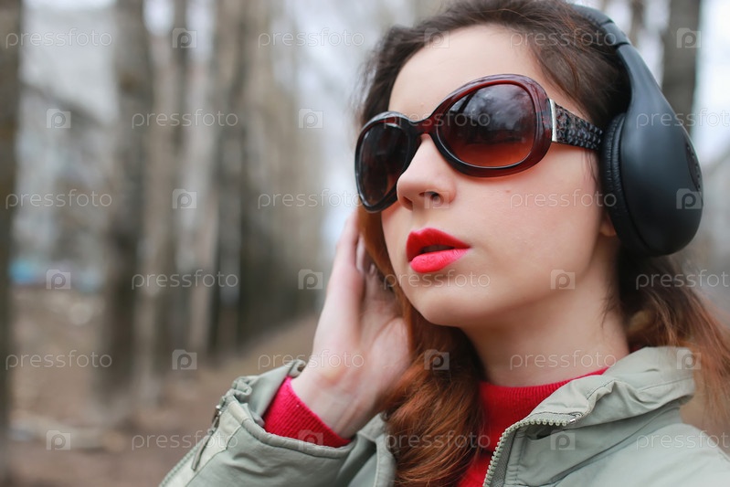 Женщина с наушниками в парке осенью