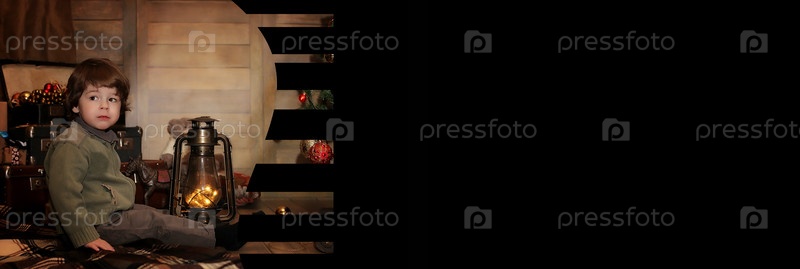 Ночь перед Рождеством, маленький ребенок сидит на полу и играет
