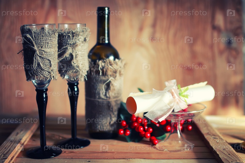 Бокалы и бутылка вина