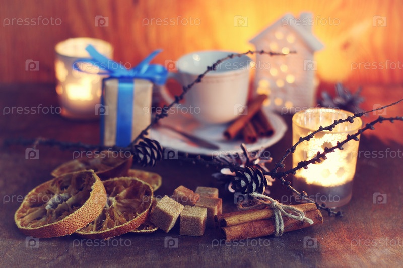 Корица, сахар и сушеные апельсины