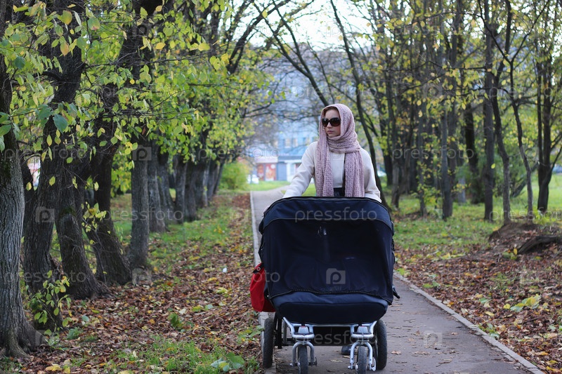 Девушка в парке с коляской