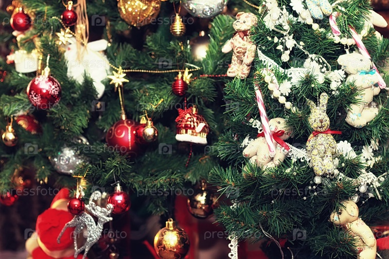 Новогодняя елка украшена игрушками