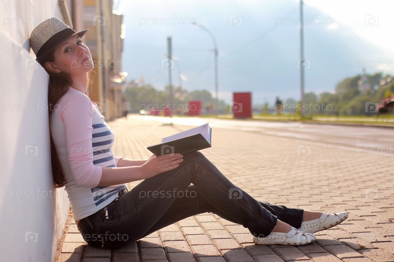 Девушка с книжкой на улице