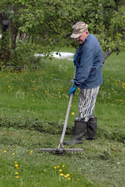 Мужчина собирает листья