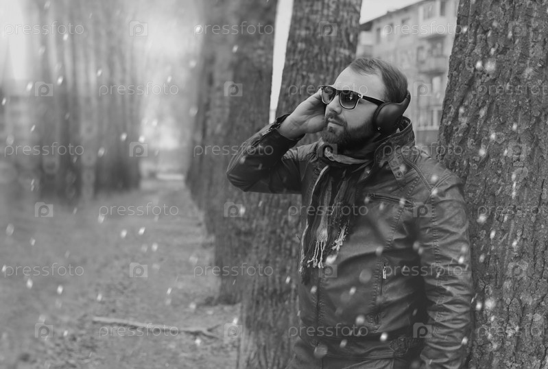 Мужчина в парке с наушниками