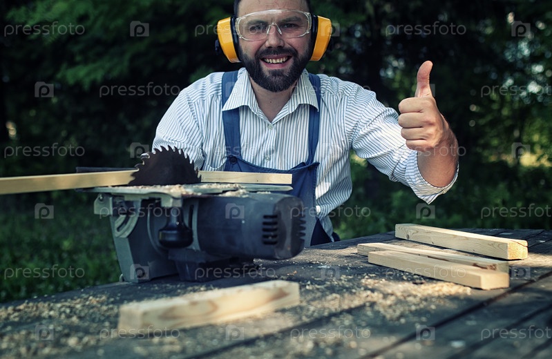Рабочий пилит доску