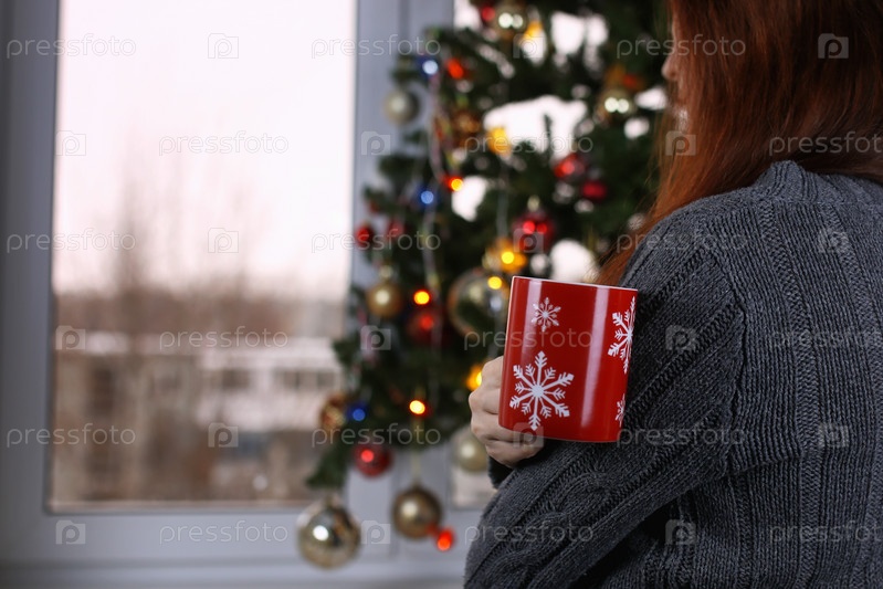 Девушка с рождественской кружкой