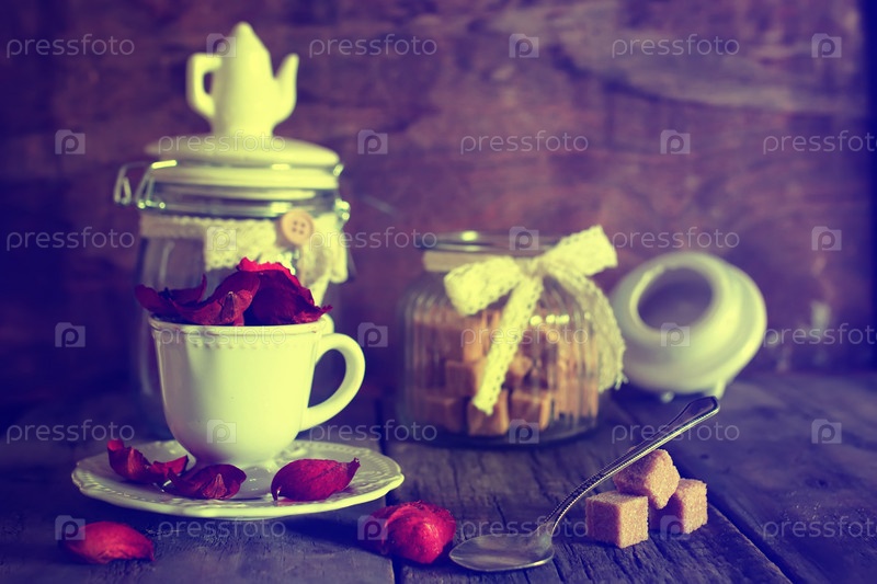 Чашка чая с кубиками сахара