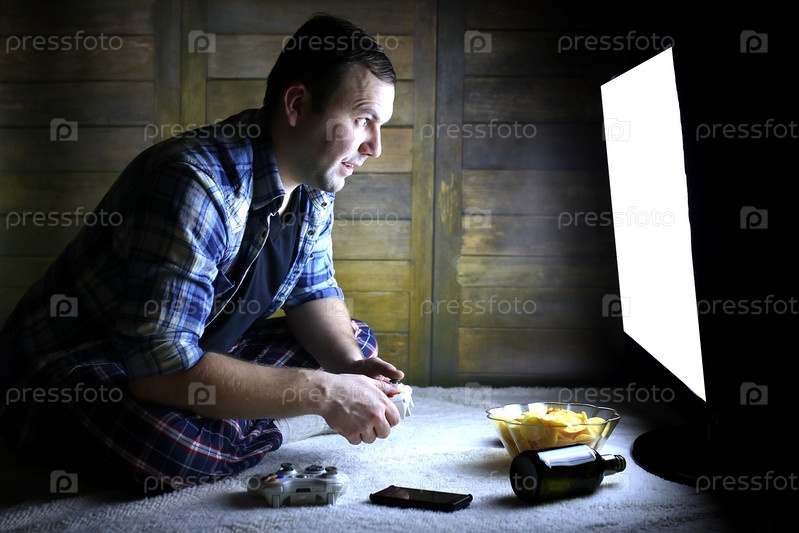 Мужчина перед телевизором