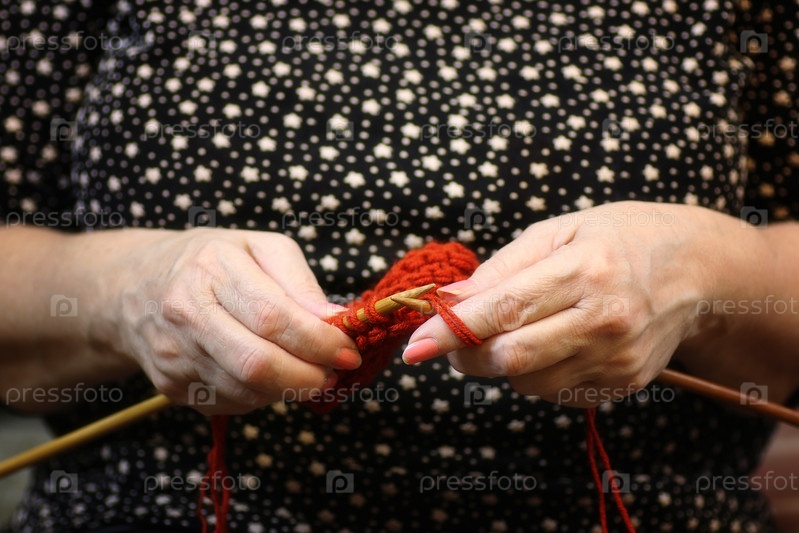 Пожилая женщина занимается вязанием