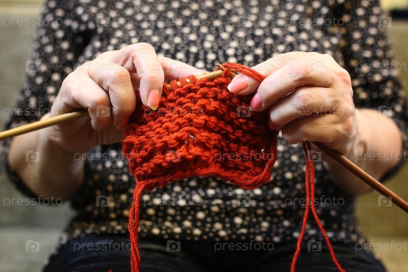 Пожилая женщина занимается вязанием