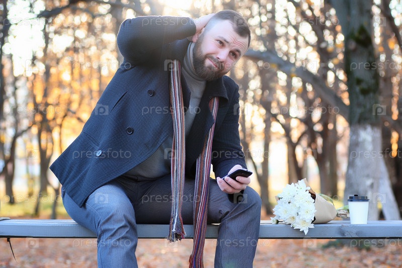 Человек ждет на скамейке