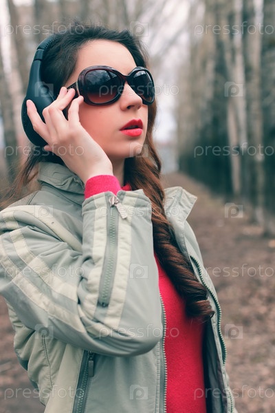 Девушка в парке с наушниками