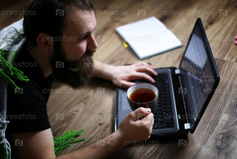 Человек на полу с ноутбуком