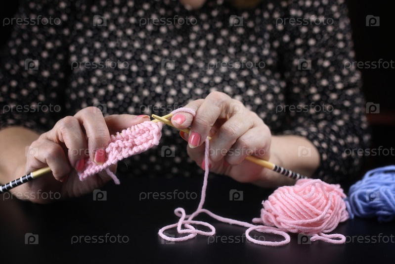 Пожилая женщина занимается вязанием