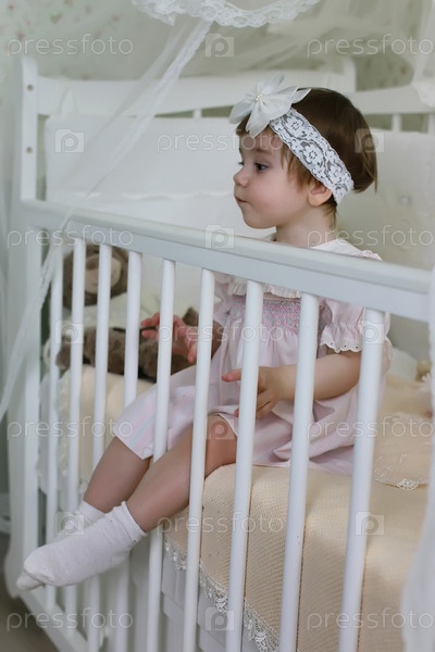 Маленький ребенок сидит в кроватке