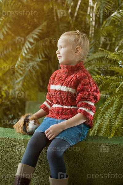 Девочка позирует в парке с ее домашним животным