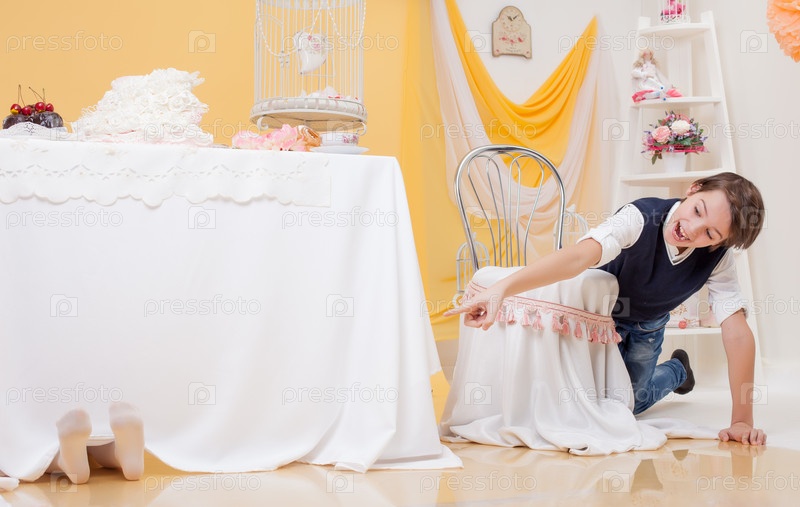 Веселый мальчик нашел свою сестру играя в прятки