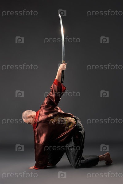 Мужчина в китайском национальном костюме с мечом