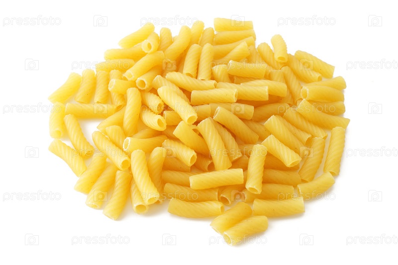 Кучка макарон на белом фоне