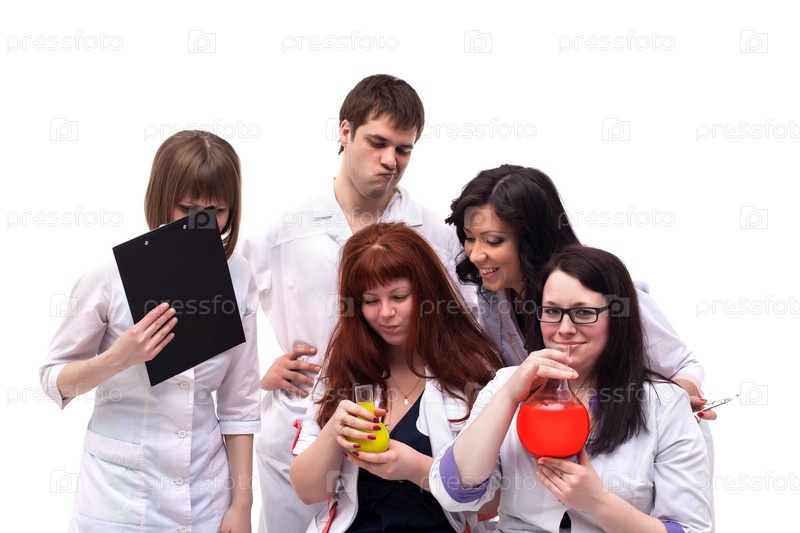 Группа молодых стажеров химиков