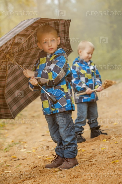 Симпатичные братья-близнецы в парке осени