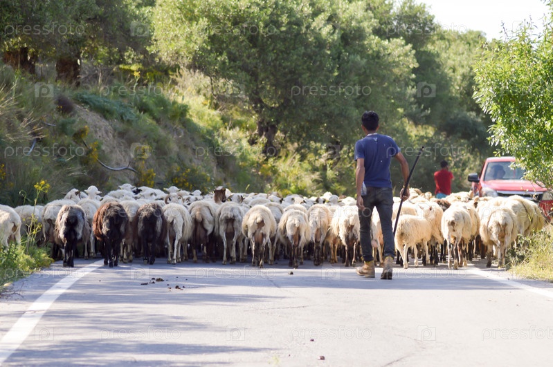 Стадо овец на проселочной дороге