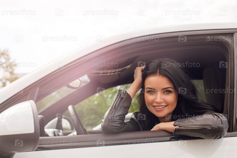 Молодая женщина, сидящая внутри автомобиля