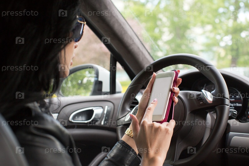 Женщина со смартфоном за рулем