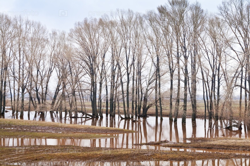 Весенний поток. Деревья в воде