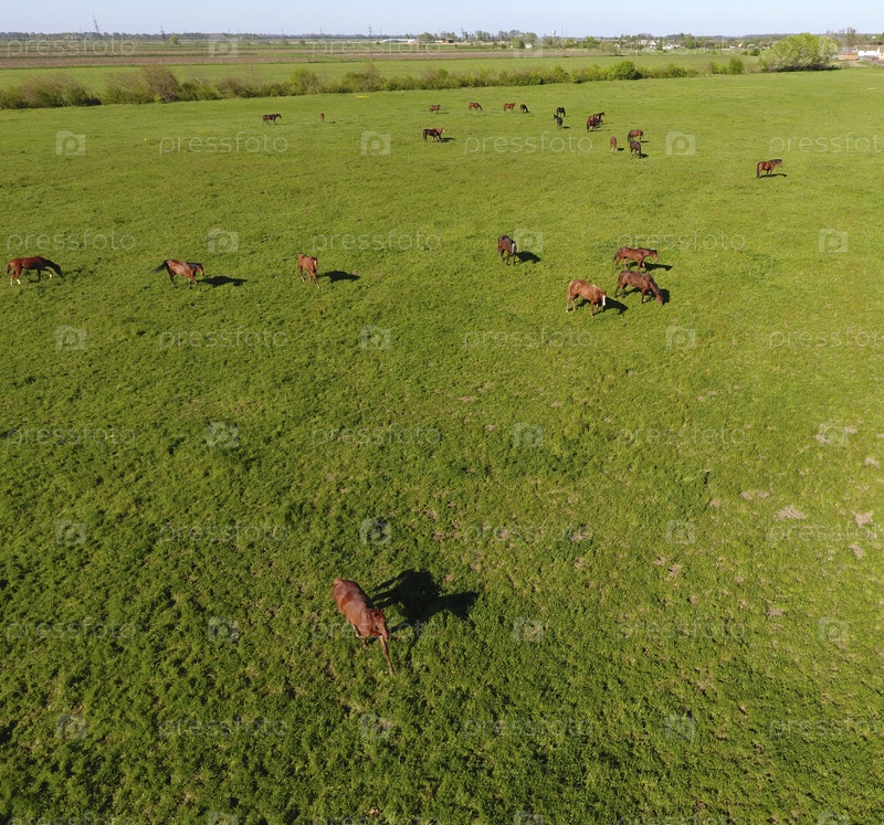 Выпас лошадей на поле