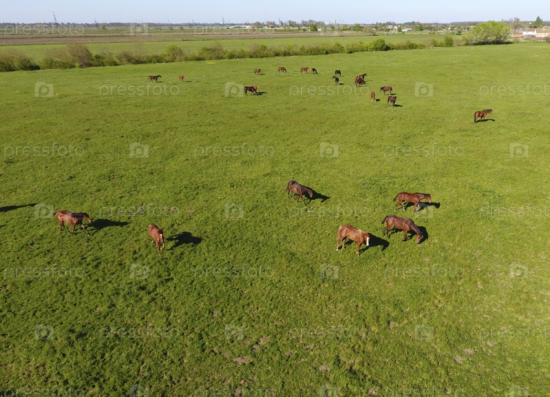 Выпас лошадей на поле
