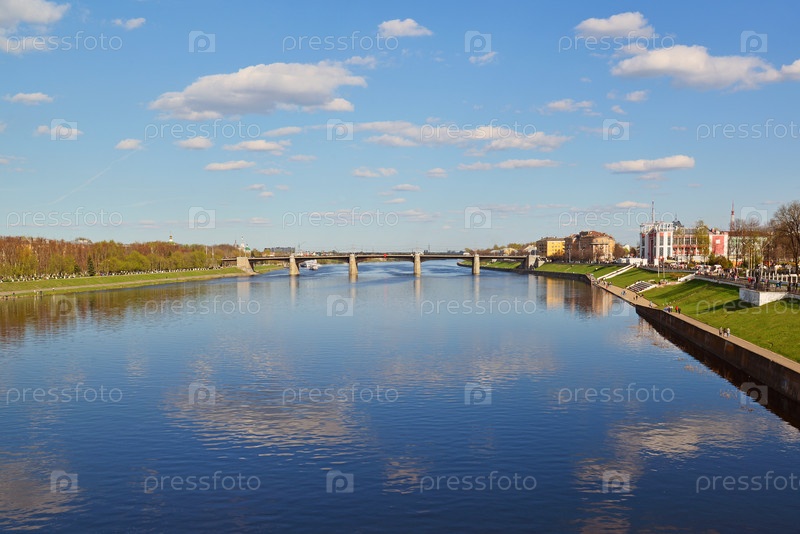 Волга вдоль набережной Михаила Ярославича в Твери, Россия