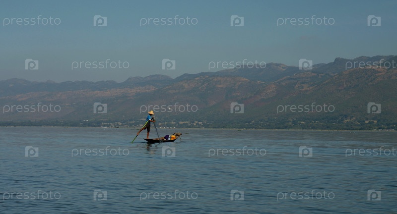 Рыбак на лодке, озеро Инле