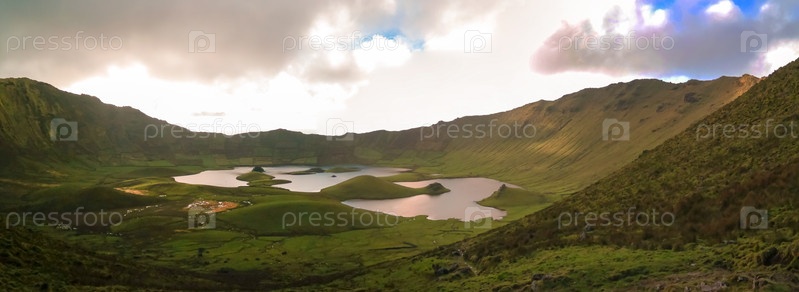 Кратер Калдейрао на острове Корво, Азорские острова, Португалия