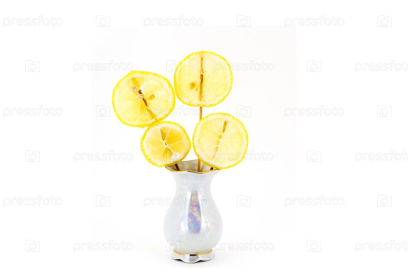 Цветочная композиция нарезанных ломтиков лимона