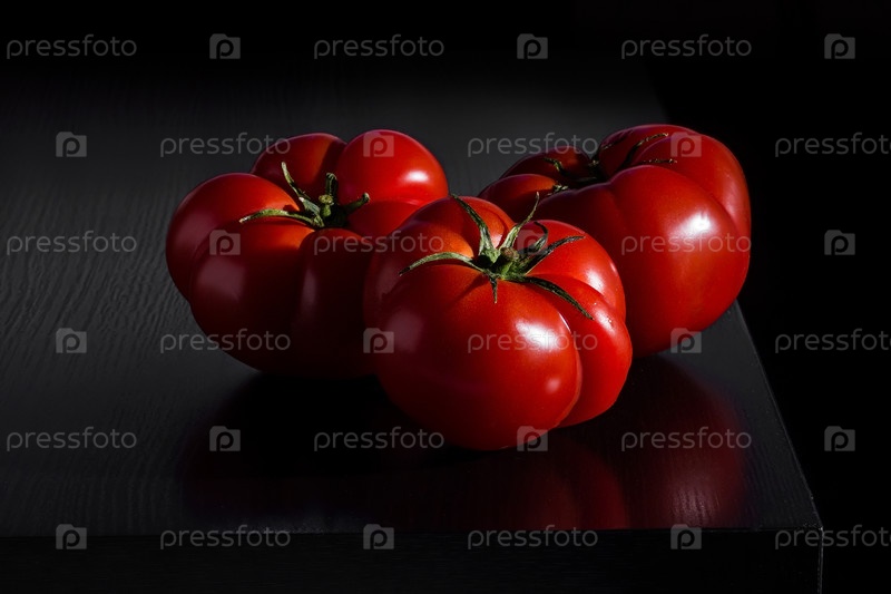 Сочные помидоры на деревянном темном фоне