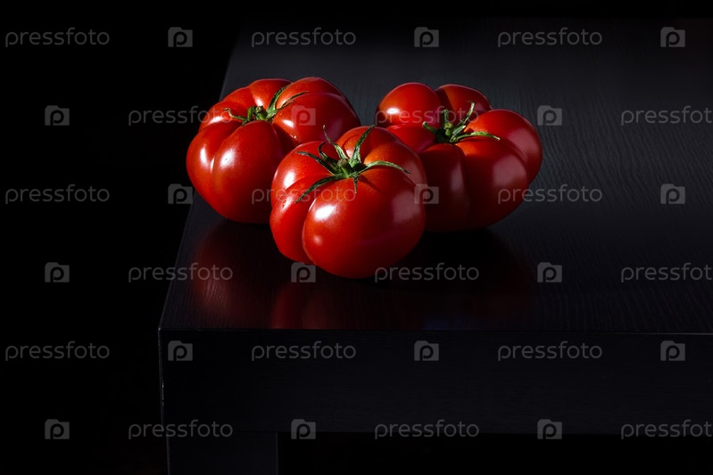 Сочные помидоры на деревянном темном фоне
