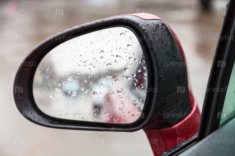 Капли дождя на боковом зеркале