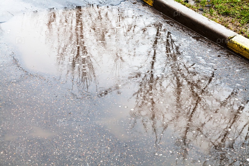 Капли дождя в луже