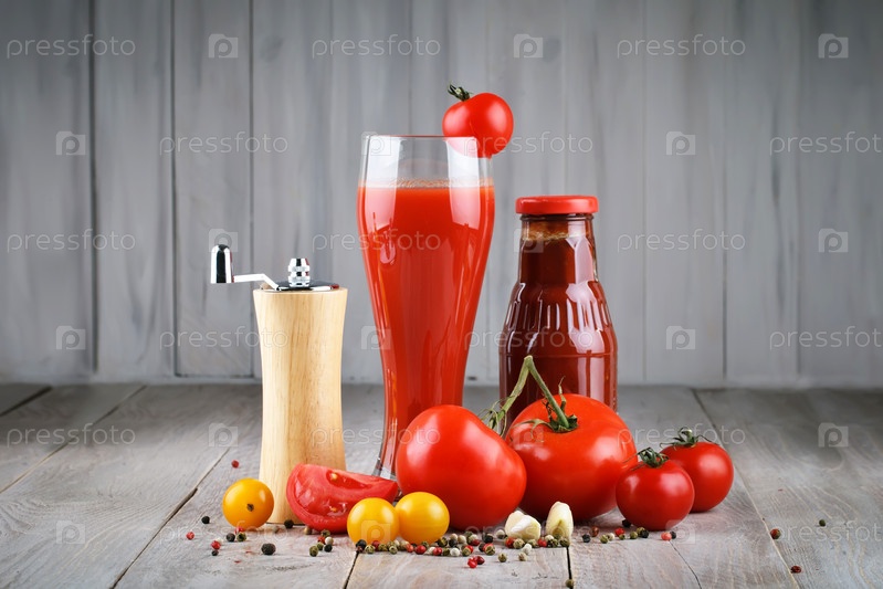 Помидоры, чеснок, томатный сок