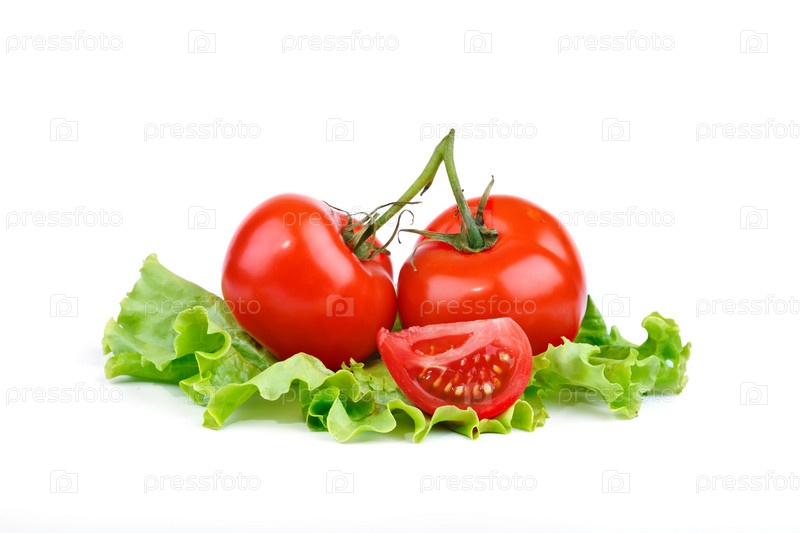 Красные спелые помидоры на белом фоне