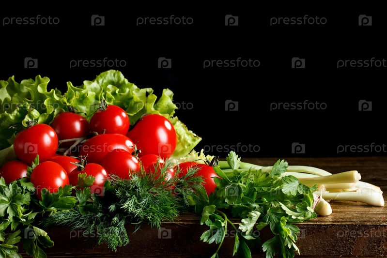 Натюрморт из помидоров, чеснока и петрушки